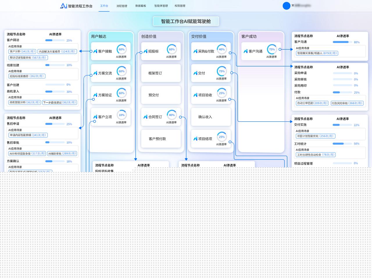 ? 將業務流程以作戰地圖的形式進行可視化呈現,清晰展示流程的各個環節、節點之間的關系以及當前流程所處階段